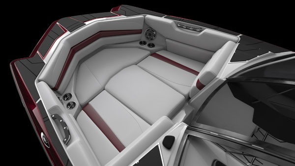 The striking dash design with glowing white 3-in-1 gauges gives the cockpit a classic sporty look. There's more function with the central touch screen that integrates menu navigation, Surf Gate control, speed control and more. The panel of soft-key switches puts major controls at the driver's fingertips, and helm and transom remotes for the audio system let the driver or passengers adjust the music.