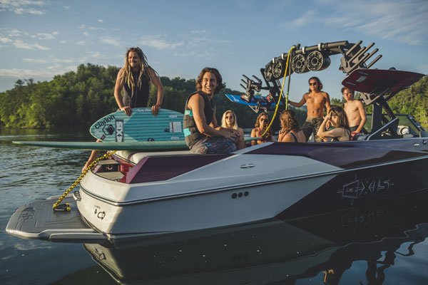 The P.S.P. starts with the Wake Plus hull design engineered for this A24 model. Combine this with wave engineering running surfaces and customised swim platforms. Then, for a bigger wake flip a switch to fill the Hard-Ballast system for wake-creating ballast. Get the Plug'n'Play ballast option to add another 570 kgs. for the biggest wake you've ever seen, equip your Axis A24 with the Auto-Set Wedge or Power Wedge III hydrofoil. Engage the wedge in the water and instantly gain another 455 kgs of wake-generating water displacement.