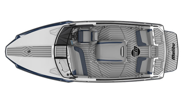 Malibu made a unique side buckle just forward of the driver that makes the boat look like an arrowhead from a bird’s-eye view. High-density marine-grade foam covers just about everything inside, and the gelcoat is available in metal-flake options that make this sleek hull look fast even when it’s at idle.