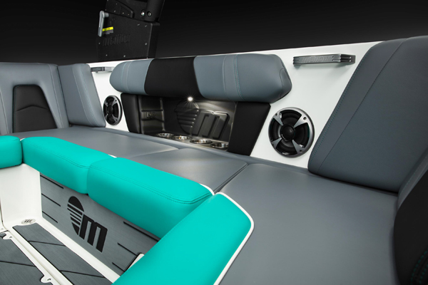 Out-of-the-box our Malibu 21 MLX is equipped with every option to maximize your watersport lifestyle, the multiple award-winning Malibu Integrated Surf Platform, from touch screen Command Center with pre-configured rider settings to get you started, before you find your sweet spot and save your dialed-in set-up the memory of the Command Center, to the Quad Hardtank Ballast system, SurfGate, PowerWedge III, and SurfBand. Not to mentioned the digitally architectured sound system tuned by Wet Sounds optimising the sound in the cockpit, bow and on the water.